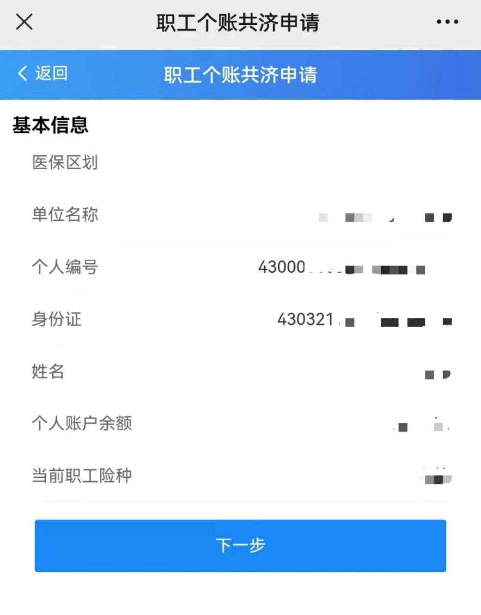 第二步:確認(rèn)參保信息,在個(gè)人賬戶有余額且參保狀態(tài)正常的情況下,點(diǎn)擊下一步。