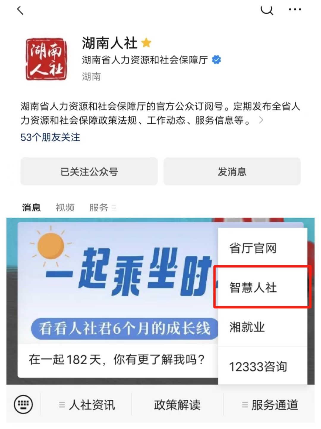 2、關(guān)注“湖南人社”“智慧人社”微信公眾號,點(diǎn)擊【服務(wù)通道】→【智慧人社】→【更多】→【社會保險(xiǎn)-失業(yè)保險(xiǎn)金申領(lǐng)】→【失業(yè)保險(xiǎn)金申領(lǐng)】辦理;